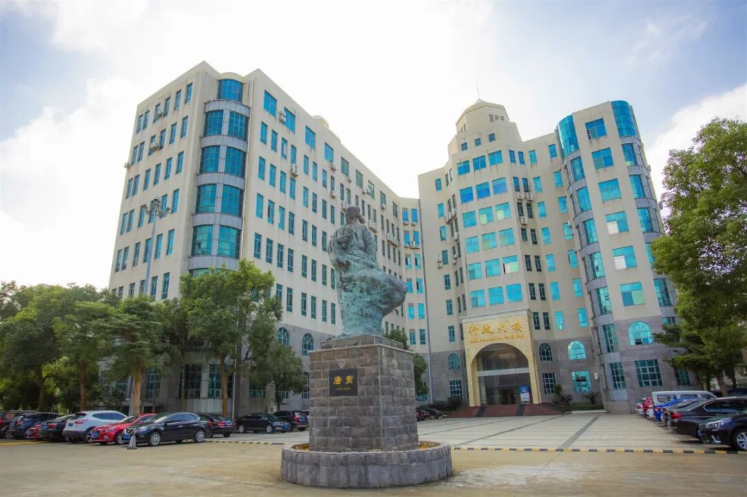 学校行政大楼前的唐胄像